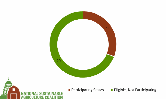 Despite the flexibility it offers, participation in CIS remains limited, in part because FSIS does not currently promote the program. Just 163 plants nationwide are participating in the program and only 9 of the 29 eligible states (31%) currently have any plants enrolled in CIS.