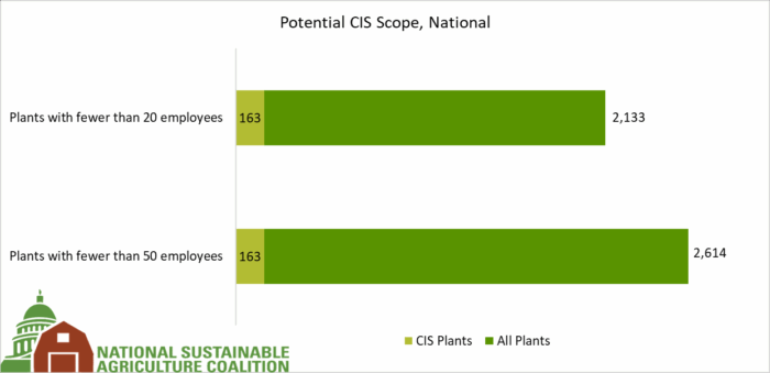 Even among the twenty nine states currently eligible for CIS, the enrollment of plants is low and would benefit from all the additional support the SLPA offers: increased cost share, and promotion of the CIS program. Currently, among plants with fewer than 20 employees in those eligible states, only 12% participate in CIS. This limited participation is not due to a lack of need—but to administrative and structural barriers.