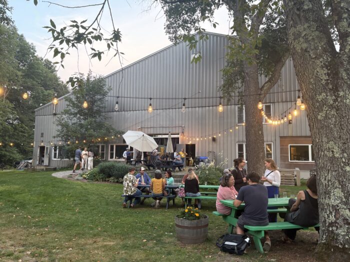 Back in Stowe, after spending half a day visiting farms and engaging in some insightful conversations on the farms and earlier in the day during our strategy sessions, we were ready to let loose for a little while. NSAC hosted a Happy Hour with food and drinks at Stowe Cider. With a large lawn and picnic tables where we could connect, we compared notes and met new and old Coalition allies and friends based in Vermont who could stop by to build community with us.
