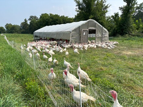 We had the opportunity to visit the small livestock farm and processing operation of Maple Wind Farm in Richmond. Maple Wind raises pastured chicken, turkey, pork, and grass-fed beef, though natural disasters that have flooded part of the valley have forced the farm to shift its operations more to chicken and away from beef. Maple Wind is one of a small number of farms that operate a USDA-inspected processing facility on-site, processing both their own poultry and other producers’ poultry as well, providing a critical food system resource for local producers and eaters alike. The visit to Maple Wind offered a chance to better understand the challenges small poultry processors face in finding workers, accessing federal grants that would allow them to improve the efficiency of their operations, and upgrading their equipment, issues that align closely with NSAC’s advocacy in support of the Strengthening Local Processing Act.